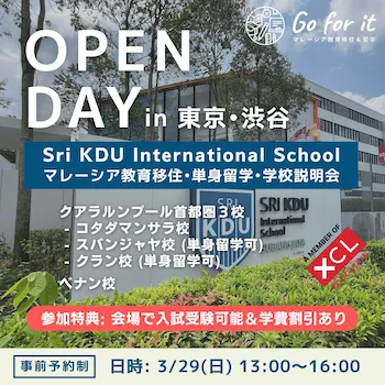 3/29(日) Sri KDU インターナショナルスクール OPEN DAY in 東京渋谷を開催!教育移住・単身留学・学校説明会 (参加割引特典あり)